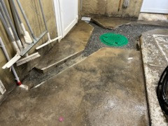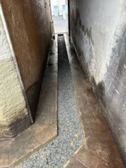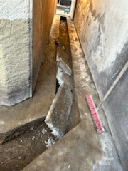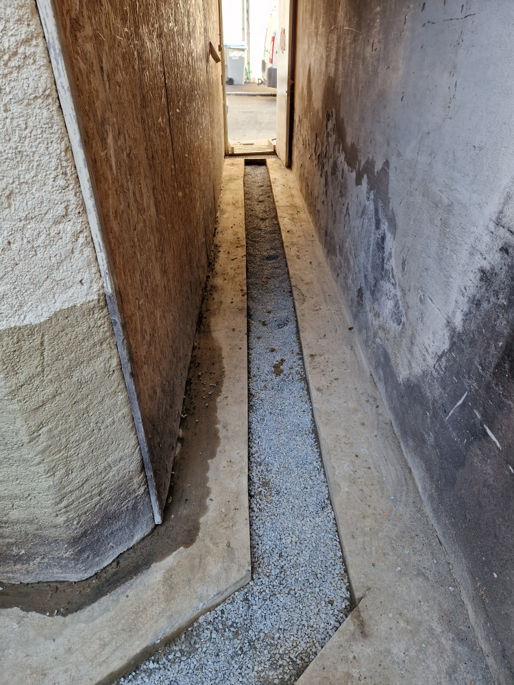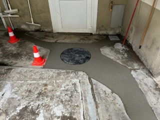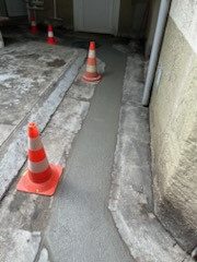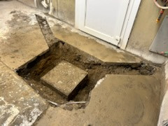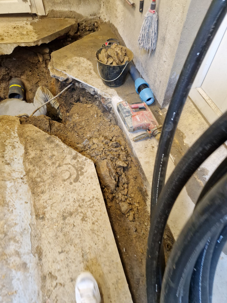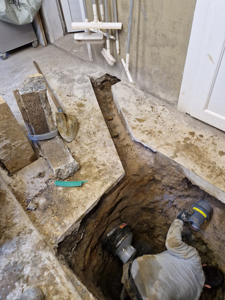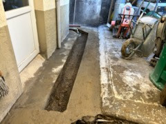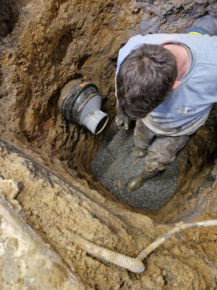Suite à l'effondrement du réseau EU sous bâtiment dévoiement des réseaux avec la mise en place d'un poste de refoulement. Travaux 100% manuel.